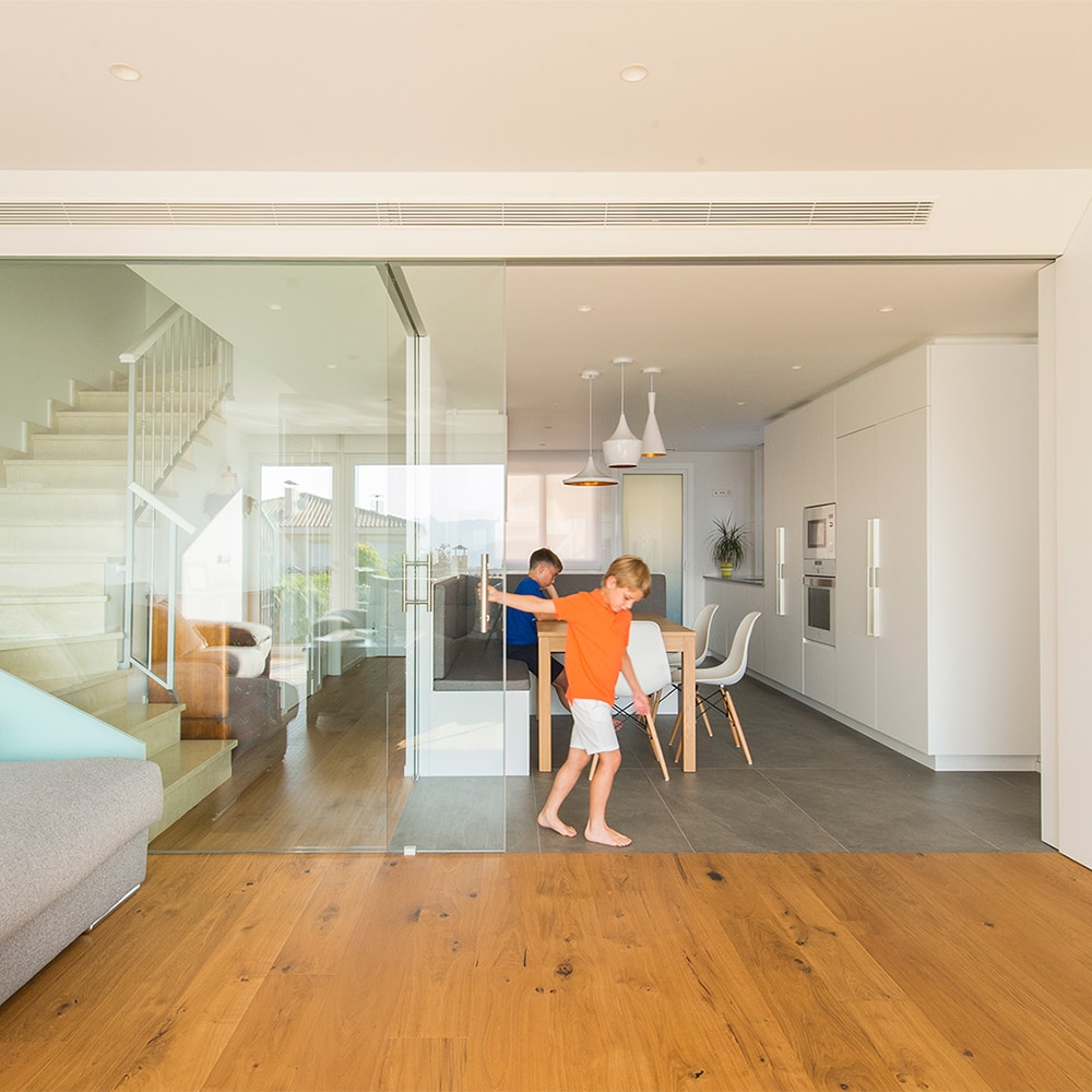 • The opening and the closing are developed smoothly dragging the two doors with a single movement.